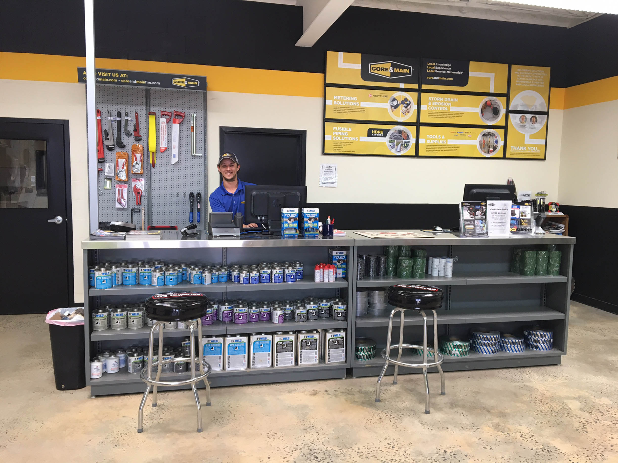 Offering the Columbia area a complete line of water, sewer, and storm drain products, from ductile iron pipe/fittings, PVC pipe/fittings and HDPE drainage pipe to copper tubing, manhole frame and covers, gate valves and service brass; we have what you need. In addition to our complete line of waterworks products, check out our extensive line of erosion control and water systems products. Take advantage of our free delivery, complete estimating and take-off services, as well as seminars and on-site training. Visit our newly remodeled showroom, our complete line of waterworks and water systems inventory. Whether you are a contractor or a municipality we are your one-stop supplier for all your needs. Centrally located in the midlands of SC, just off interstate 26 at 914 Chris Drive, West Columbia.